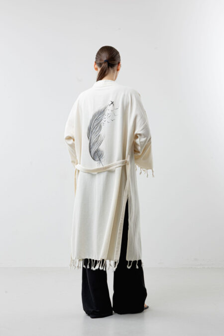 125,00 €Step into effortless elegance with our Hand-Painted Feather Design Cotton Kimono, crafted from 100% Turkish cotton. Featuring an artisanal feather motif hand-painted with blue natural dyes, this long kimono is perfect for the beach, spa, or everyday wear. Soft, breathable, and uniquely stylish.