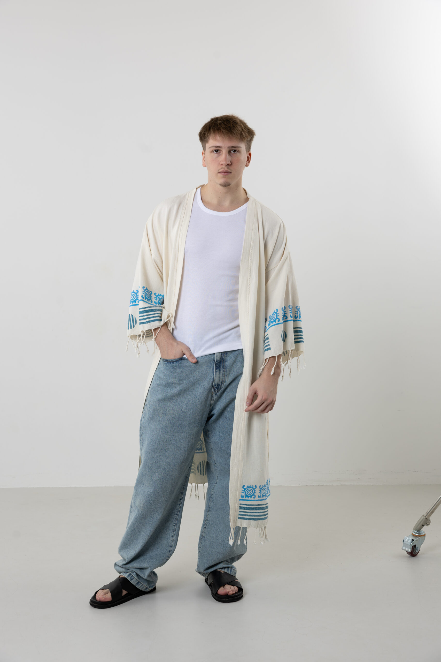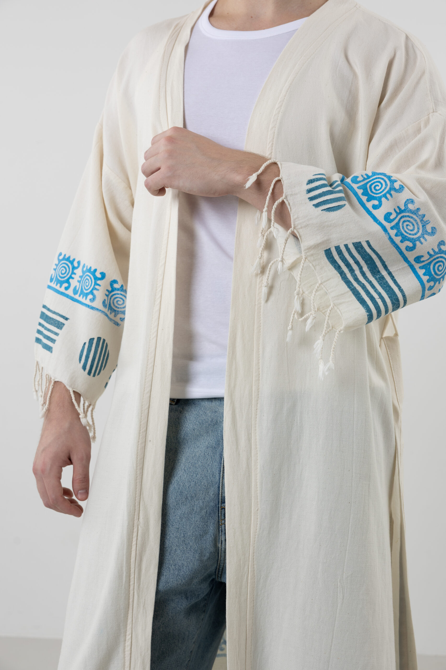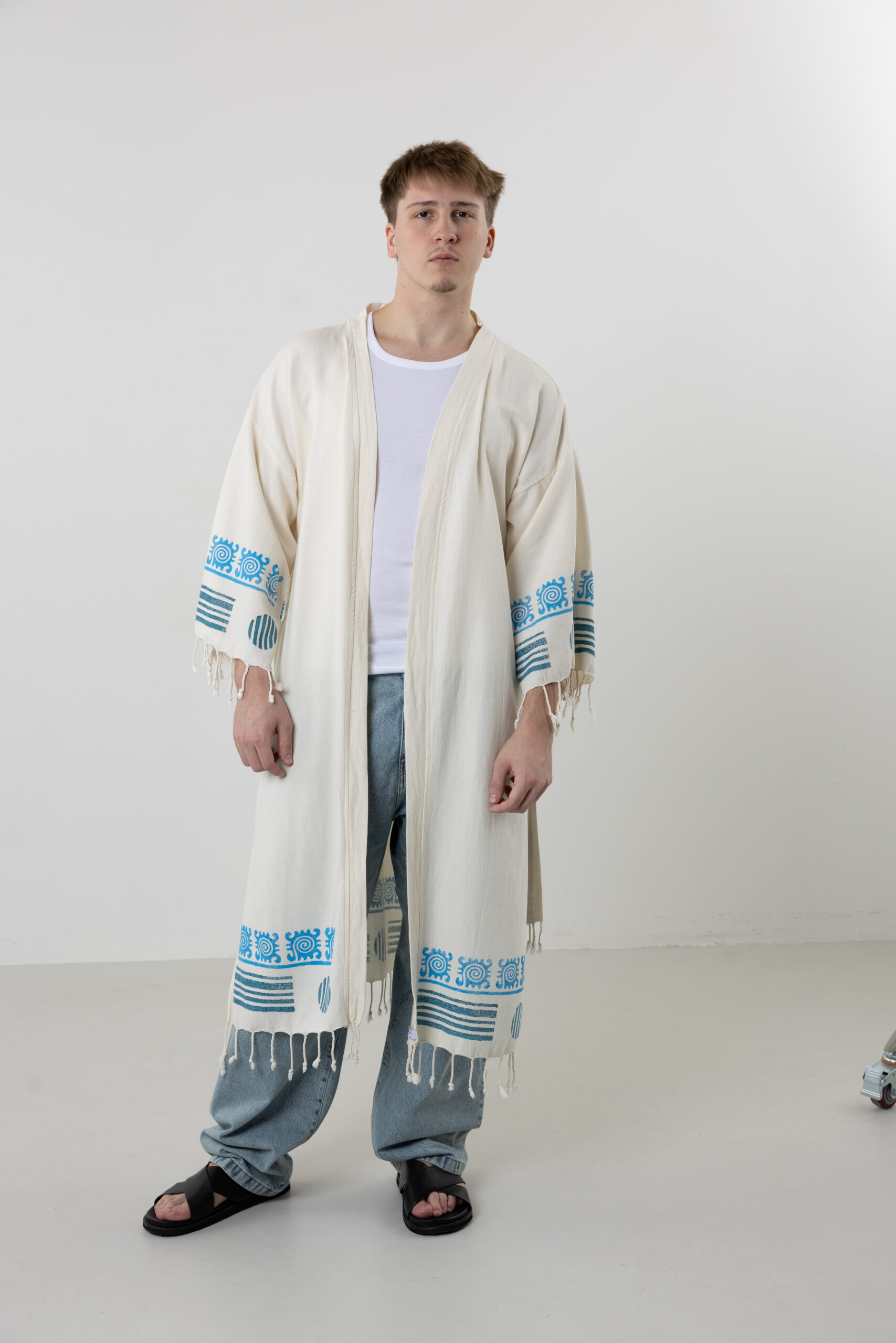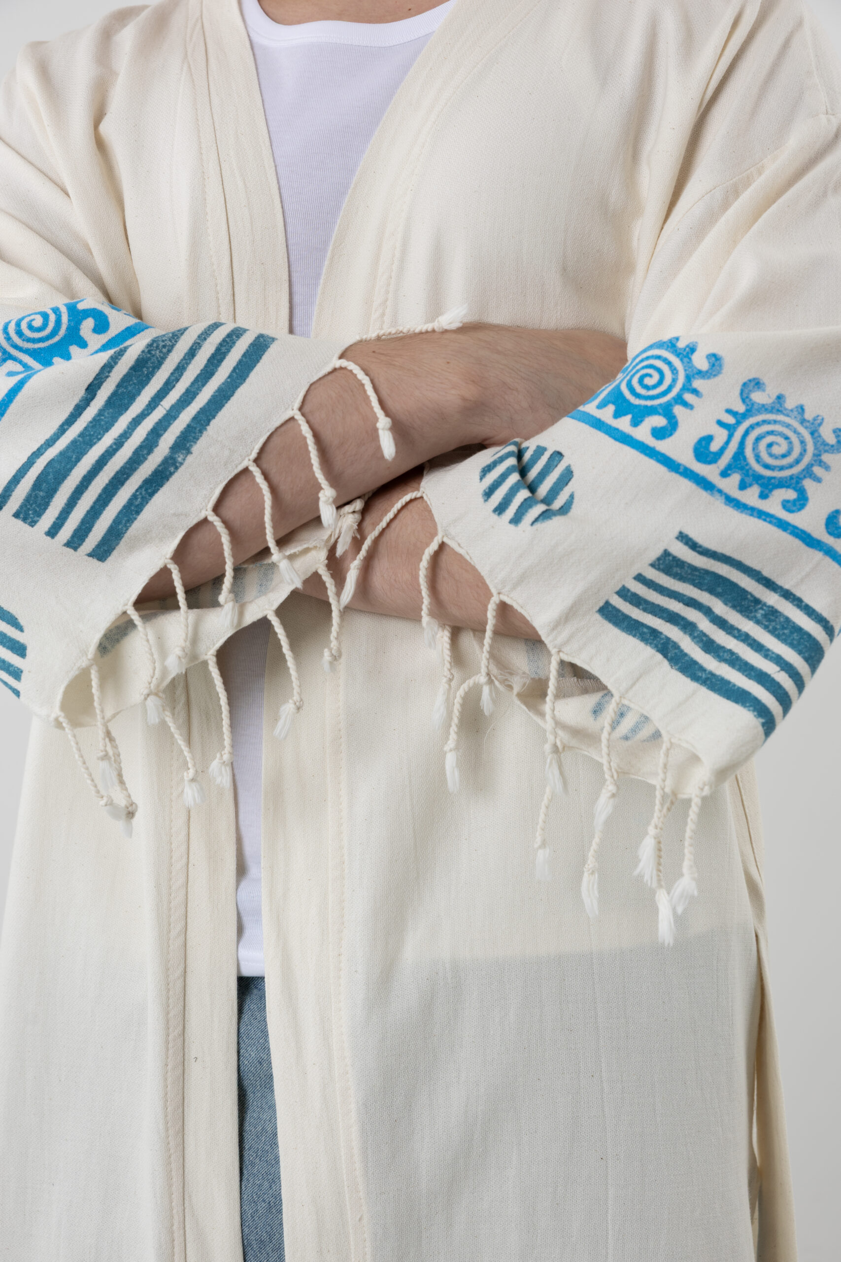 Experience the perfect combination of comfort, versatility, and artisanal craftsmanship with the Artisan Turkish Cotton Multi-Use Robe – Spiral Blue.