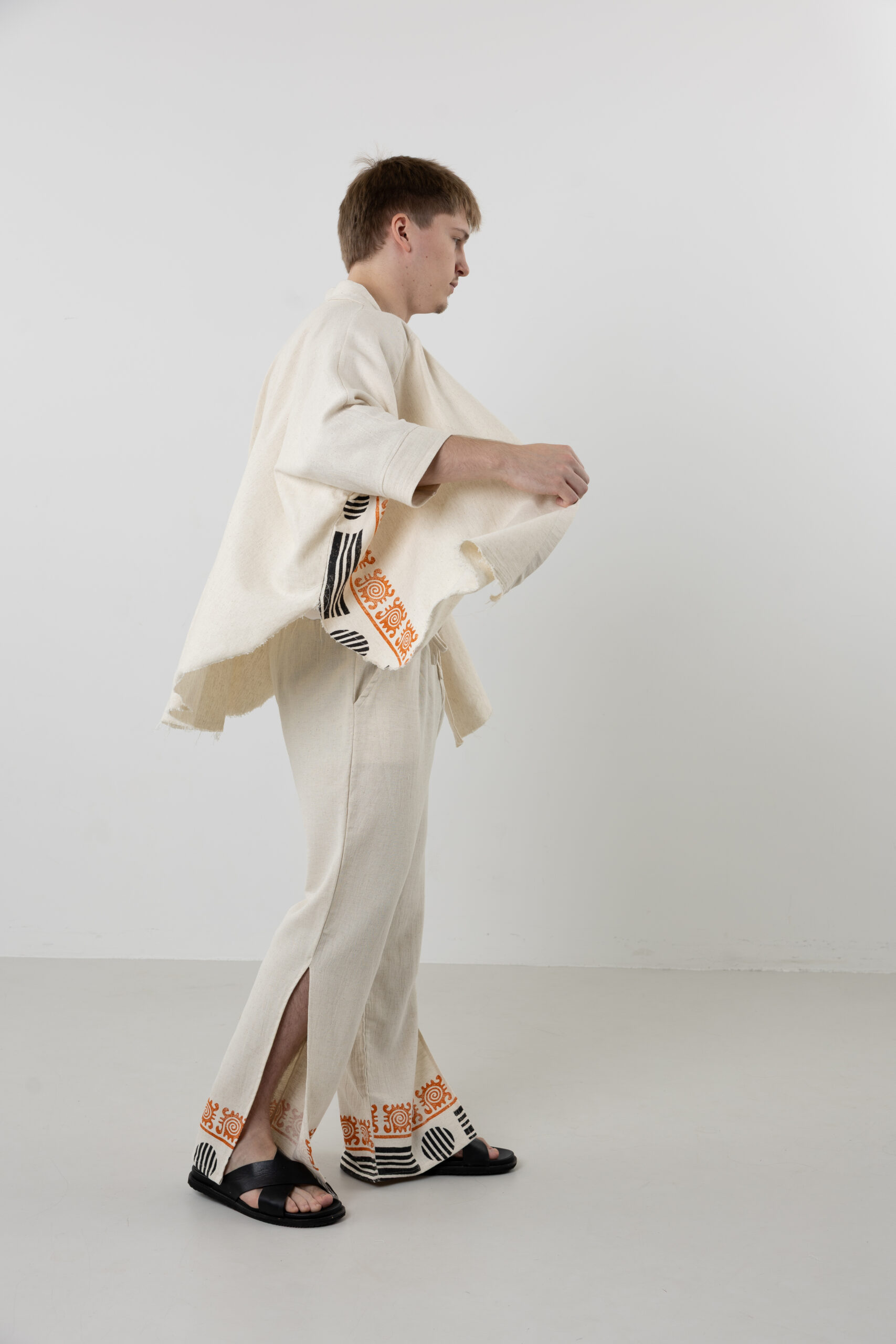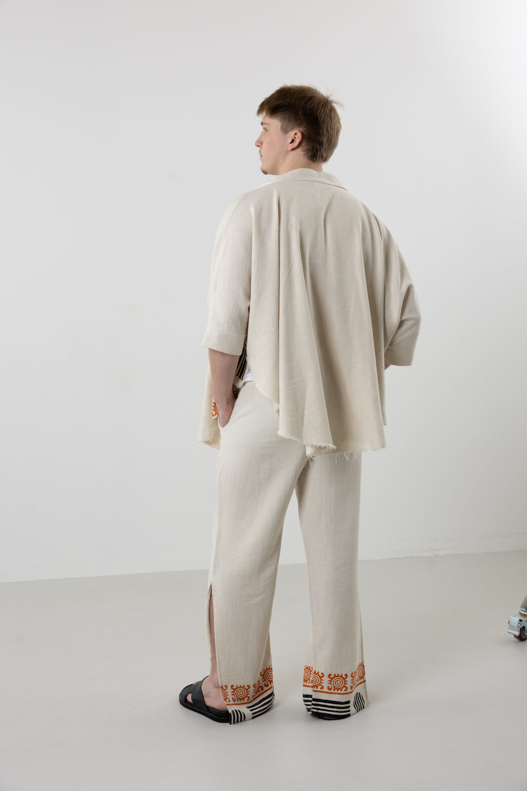 Experience relaxed sophistication with our Bohemian Linen Set – a unisex outfit crafted from 50% cotton and 50% linen.