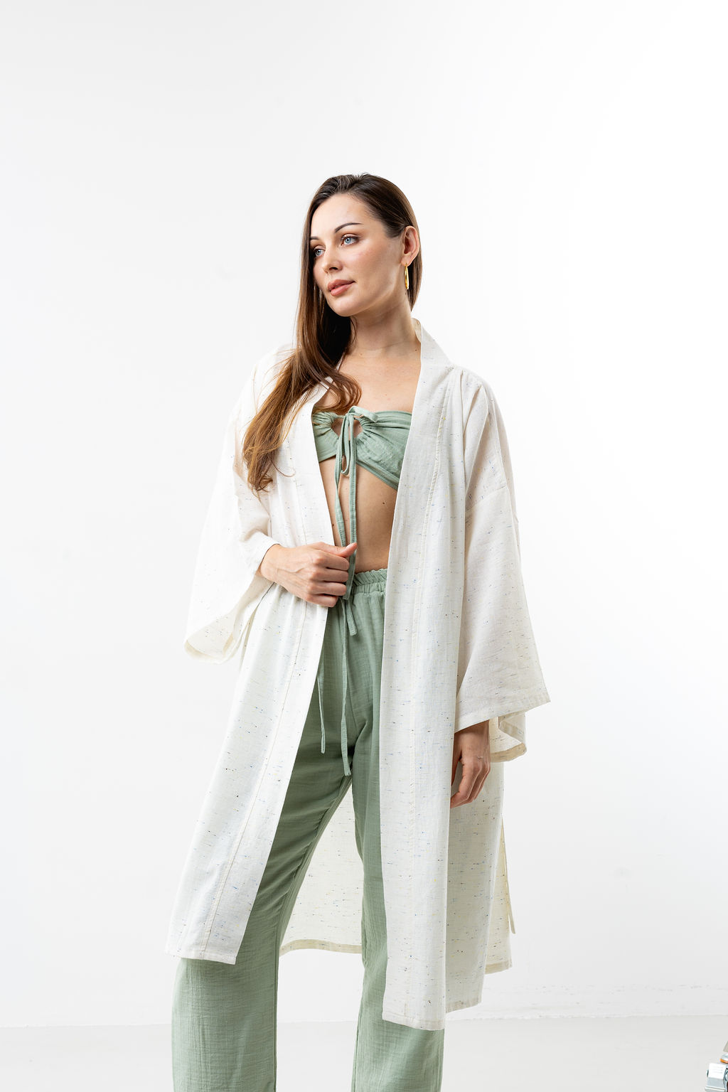 - Material: 100% speckled linen – lightweight, breathable, and natural
