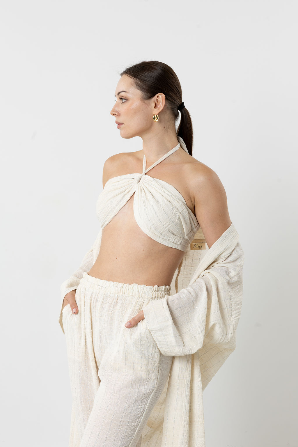Exude elegance with the Starlight Silk Pants, crafted from special handwoven glitter silk with natural sparkling threads. This limited-edition design is lightweight, soft, and subtly shimmering, perfect for daywear, evening events, or luxurious lounging.