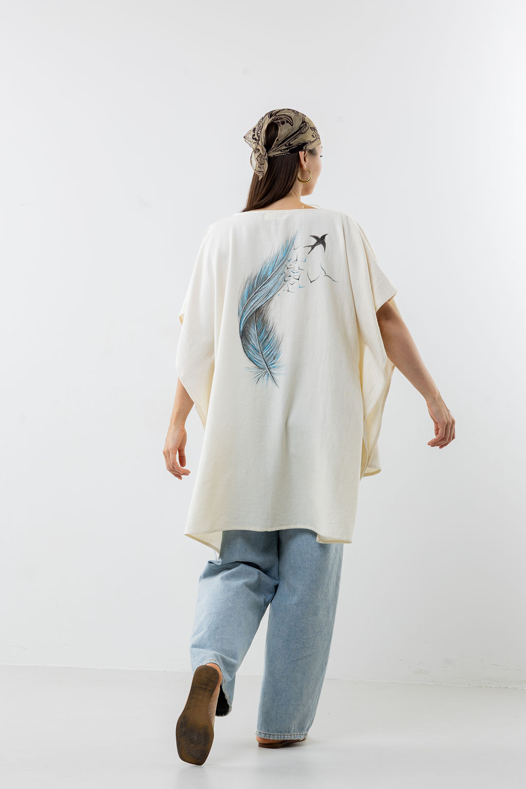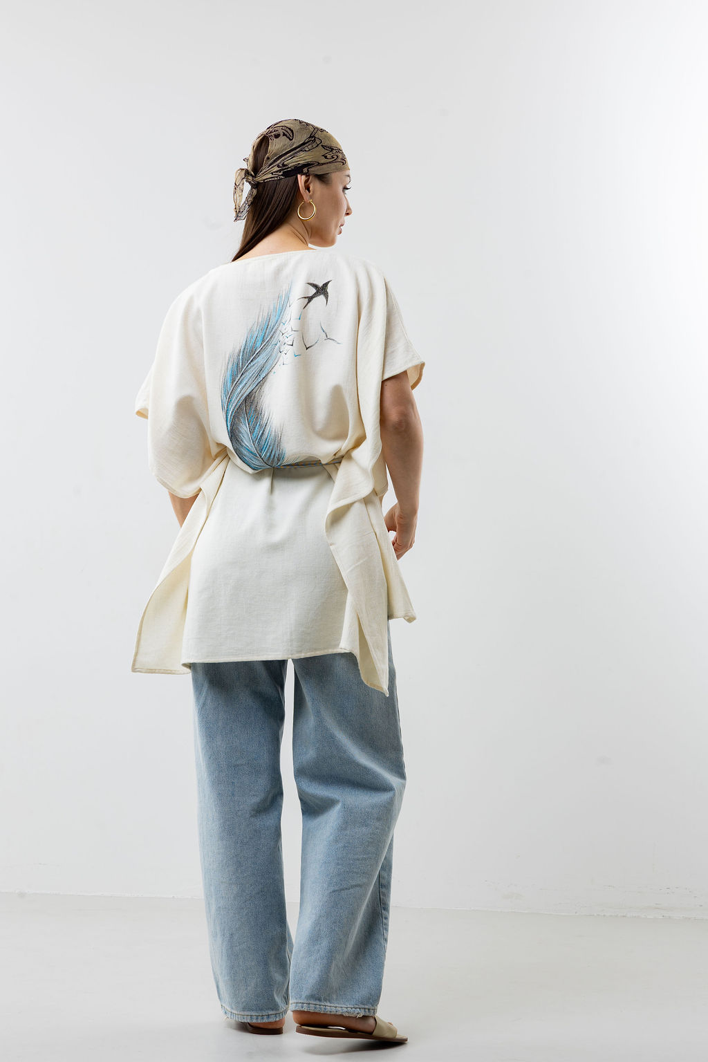 The Hand-Painted Feather Design Vest & Tunic is more than clothing — it’s an exclusive, wearable piece of art in natural linen, perfect for expressing your style while embracing comfort and uniqueness.