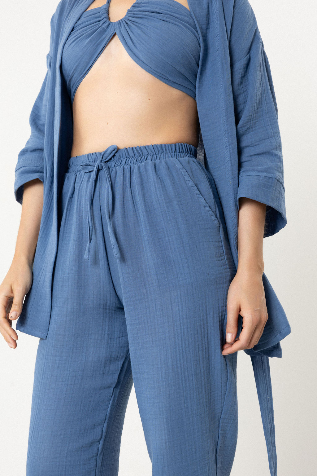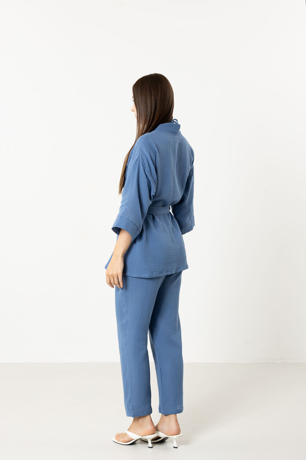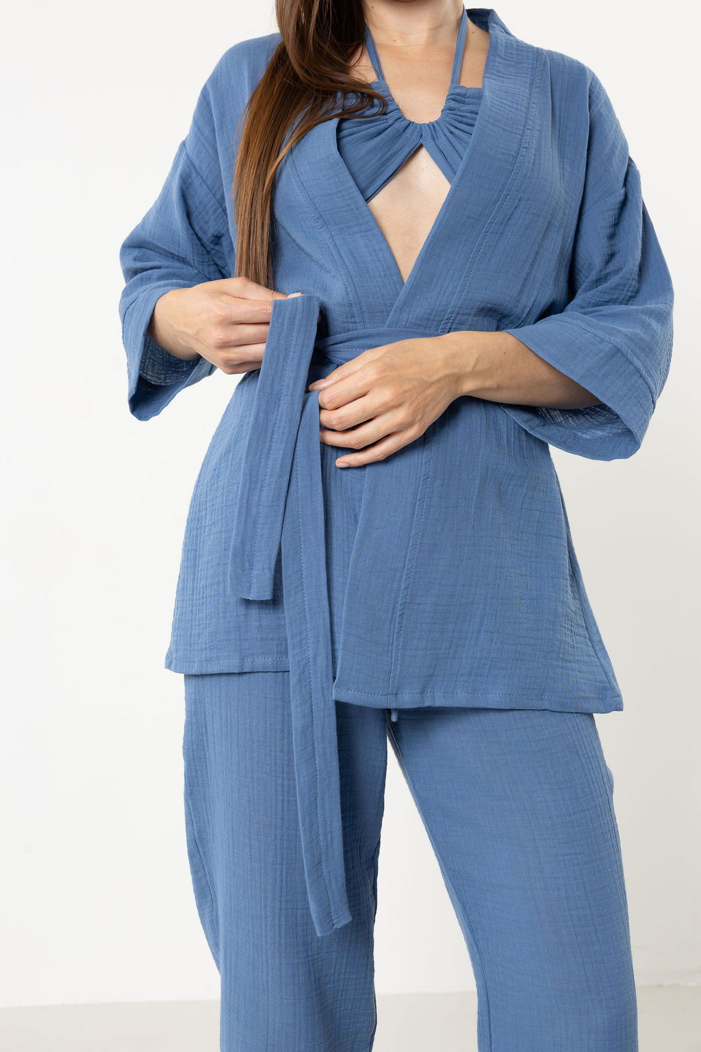 Discover the perfect blend of comfort, style, and versatility with the Soft Cotton Double-Layer Muslin Kimono & Pants Set – All-Season Co-ord for Home, Street & Elegant Styling.