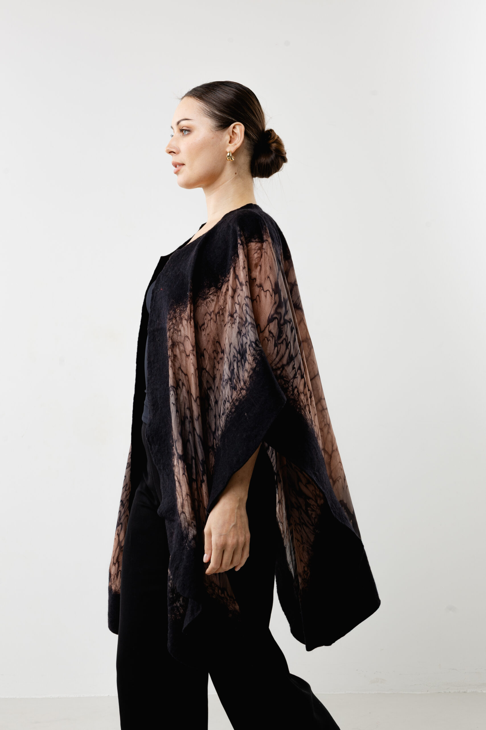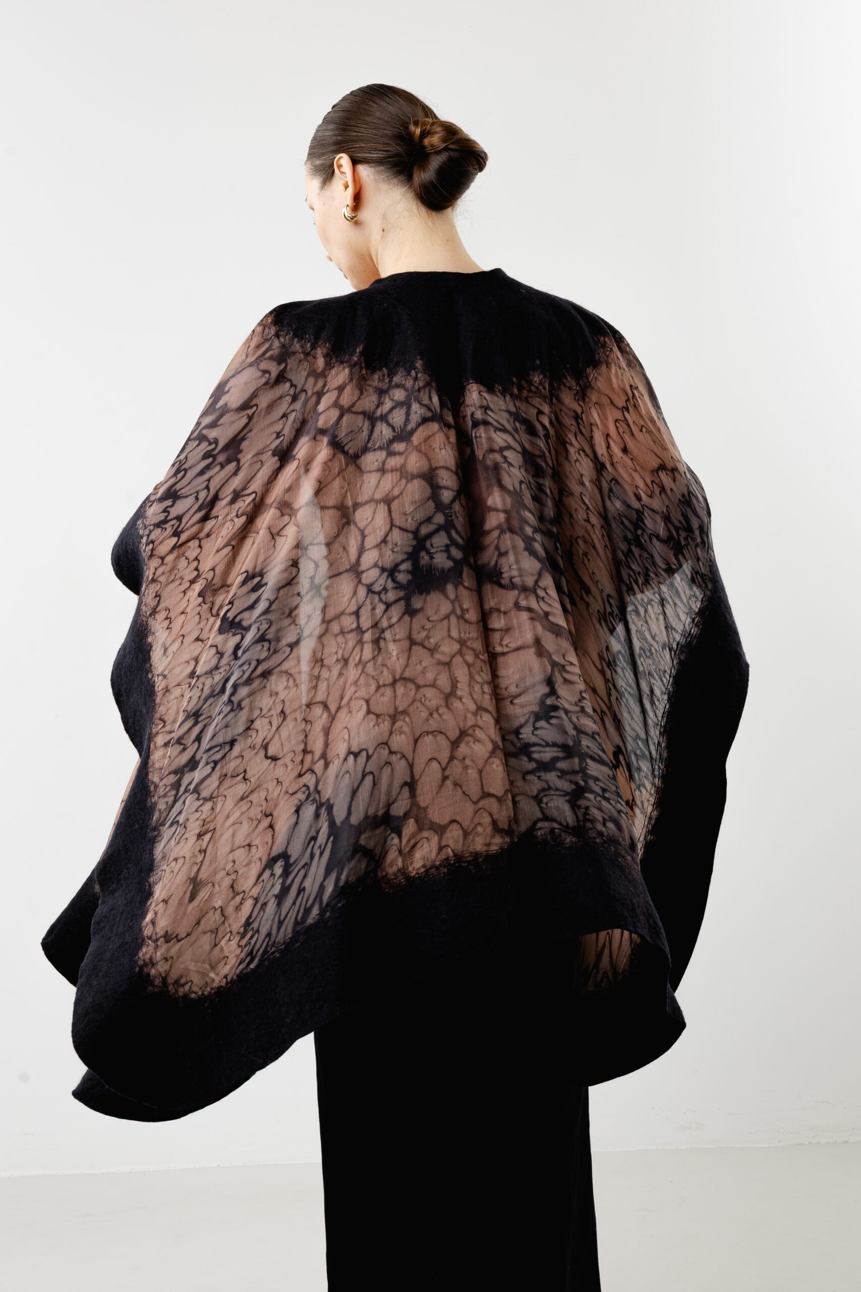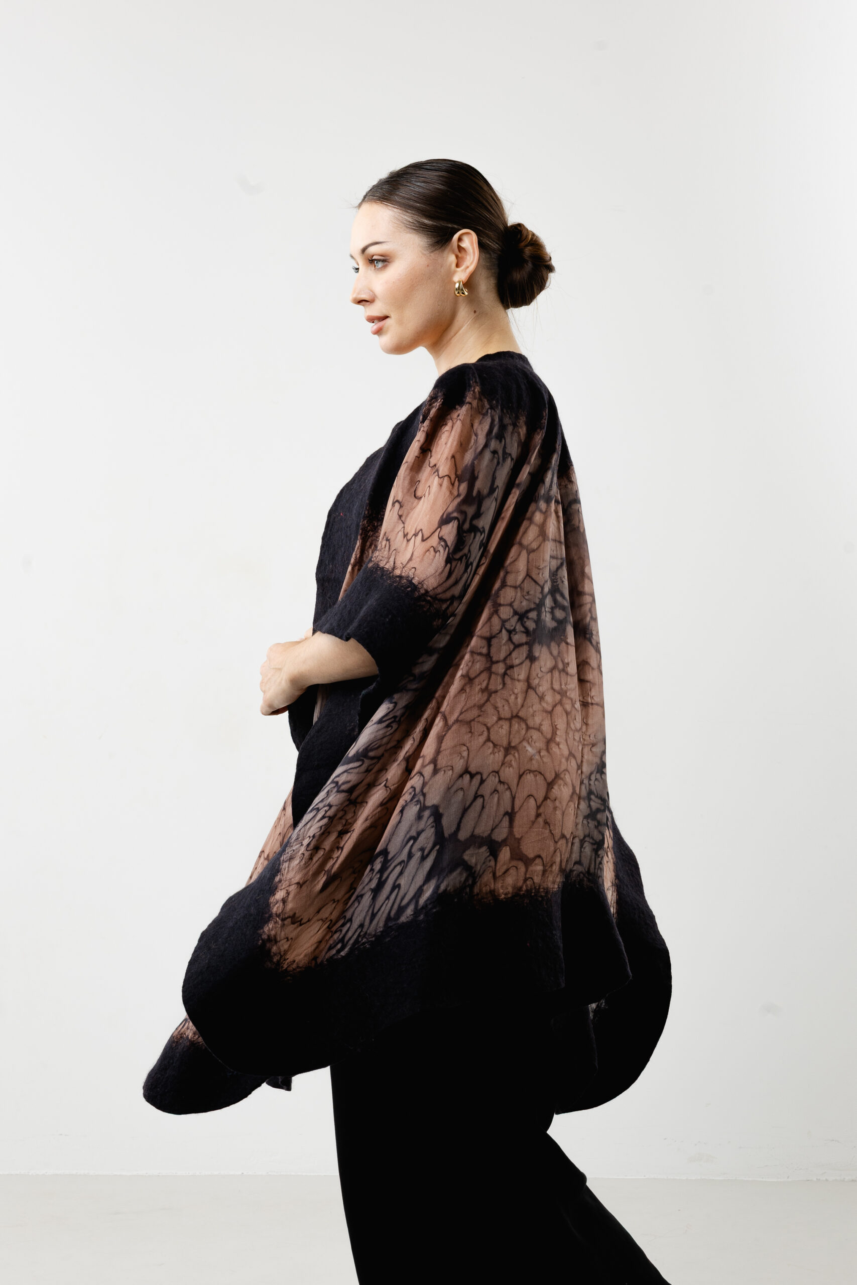 • Artisan Craftsmanship: Each piece is meticulously created using traditional felting and hand-painting techniques, ensuring a unique, one-of-a-kind luxury poncho.