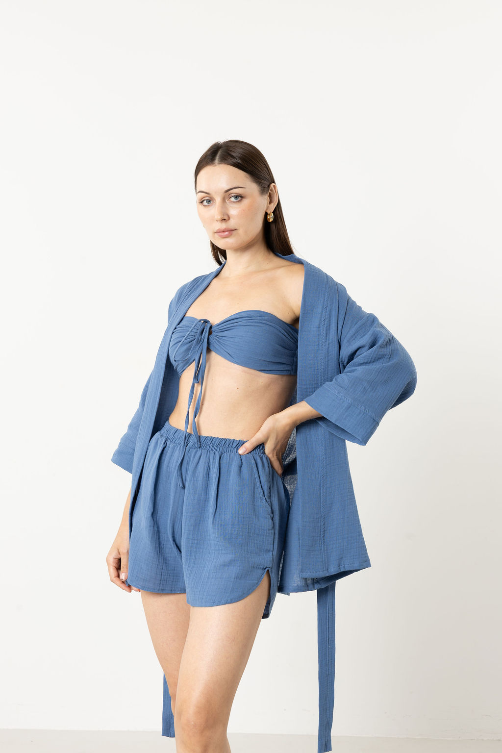 Upgrade your summer wardrobe with the Soft Cotton Muslin Shorts & Bustier Set, perfect for the beach, home, or everyday wear. Designed for comfort and versatility, this set is made from 100% natural cotton muslin, woven in a double-layer technique for lightweight, breathable, and soft-to-skin comfort.