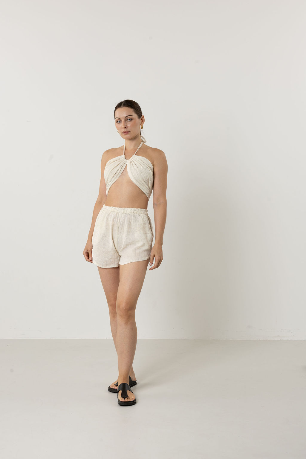 Shine with elegance in the Starlight Silk Shorts & Bustier Set, handcrafted from 50% premium Turkish cotton and 50% glitter silk using the exclusive Crinkle Weave technique. Lightweight, soft, and shimmering, this limited-edition set is perfect for casual outings, chic evenings, or luxurious loungewear.