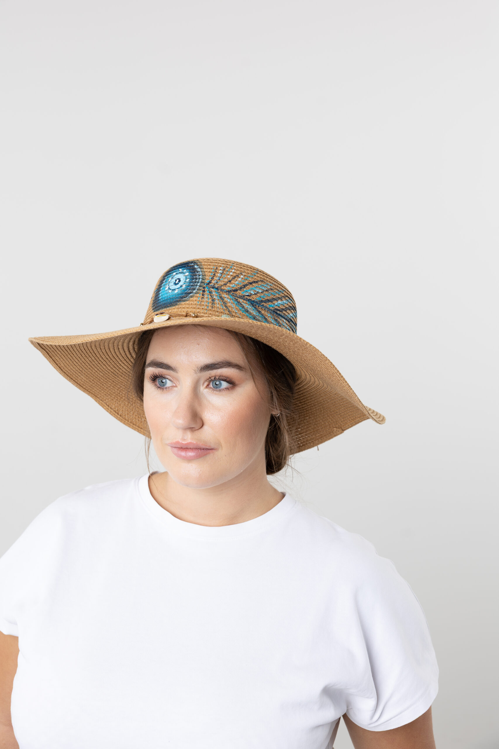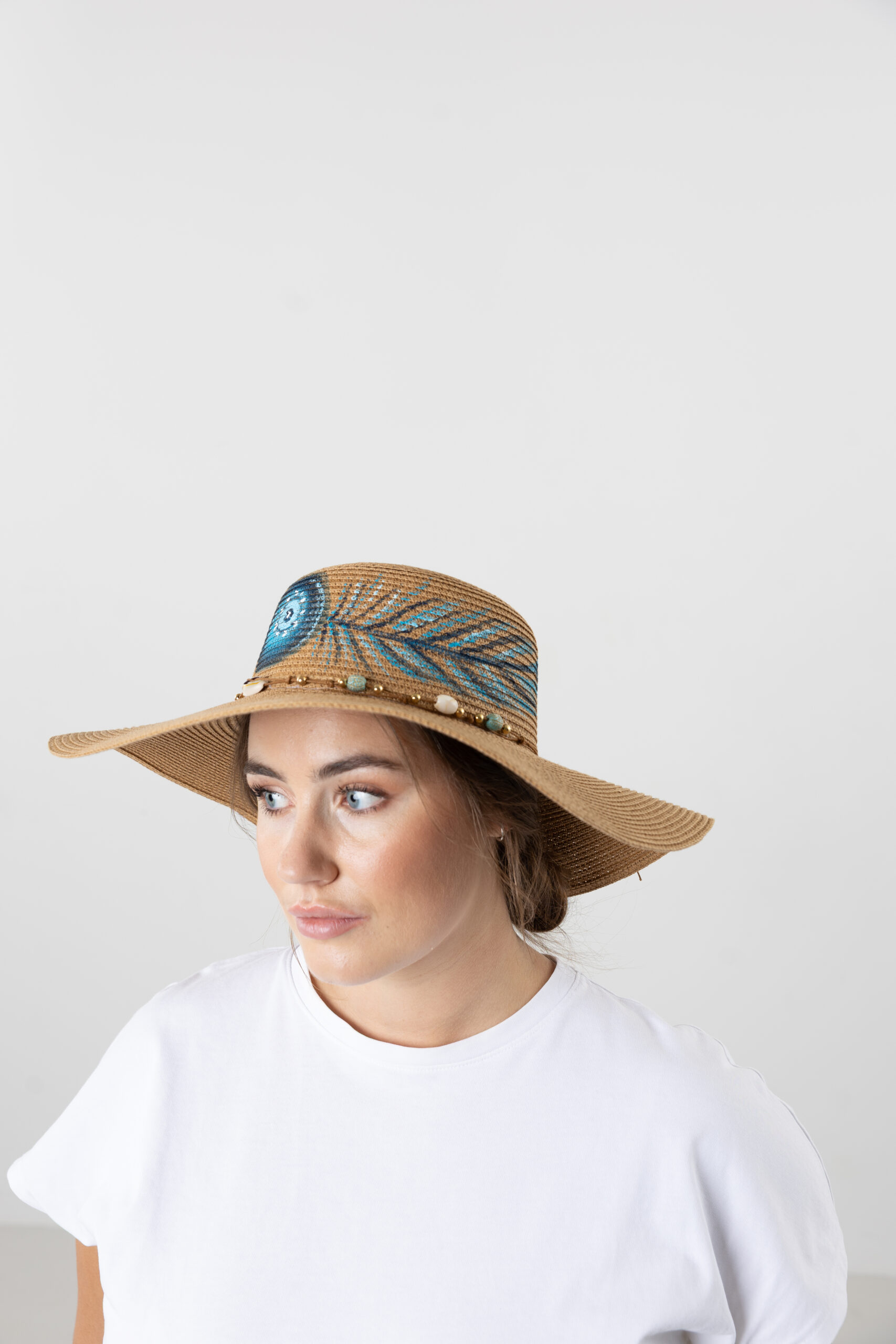- Design: Wide-brimmed women’s summer hat with unique hand-painted patterns