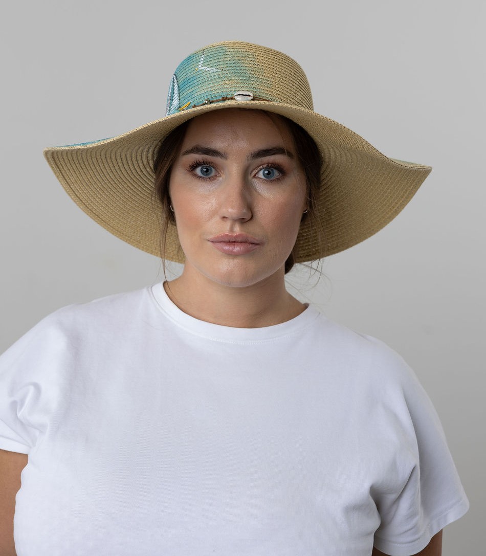 - Design: Wide-brimmed women’s summer hat with unique hand-painted patterns