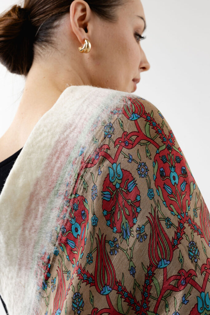 Silkea Textil draws inspiration from the rich textile heritage of Anatolia — a region historically renowned for its silk production and craftsmanship. Through thoughtful design and close collaboration with skilled artisans, the brand presents an exclusive collection of luxury ponchos and shawls crafted from hand-painted natural silk and merino wool felt.